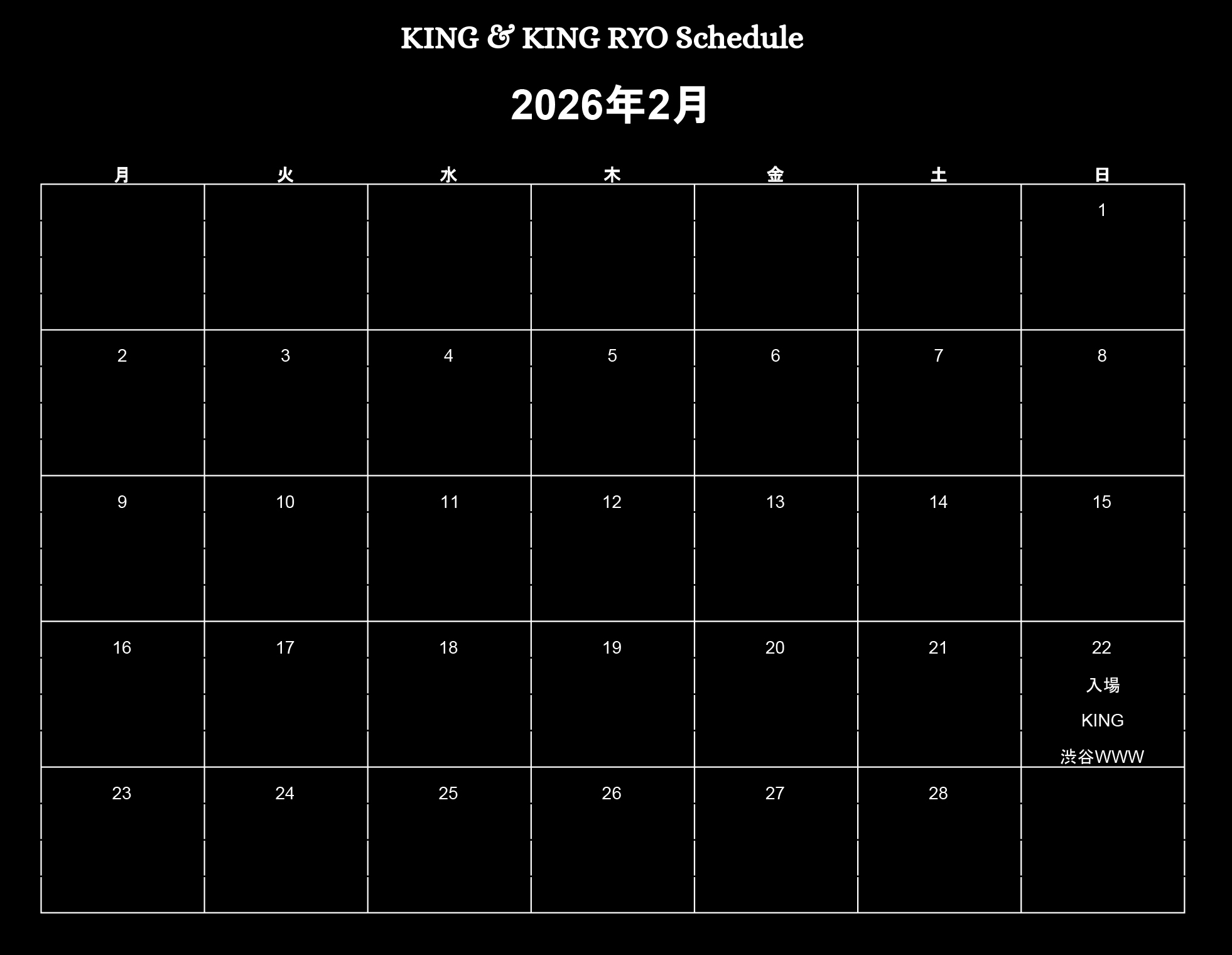 2026.2.22(日)渋谷WWW【KING】【入場】