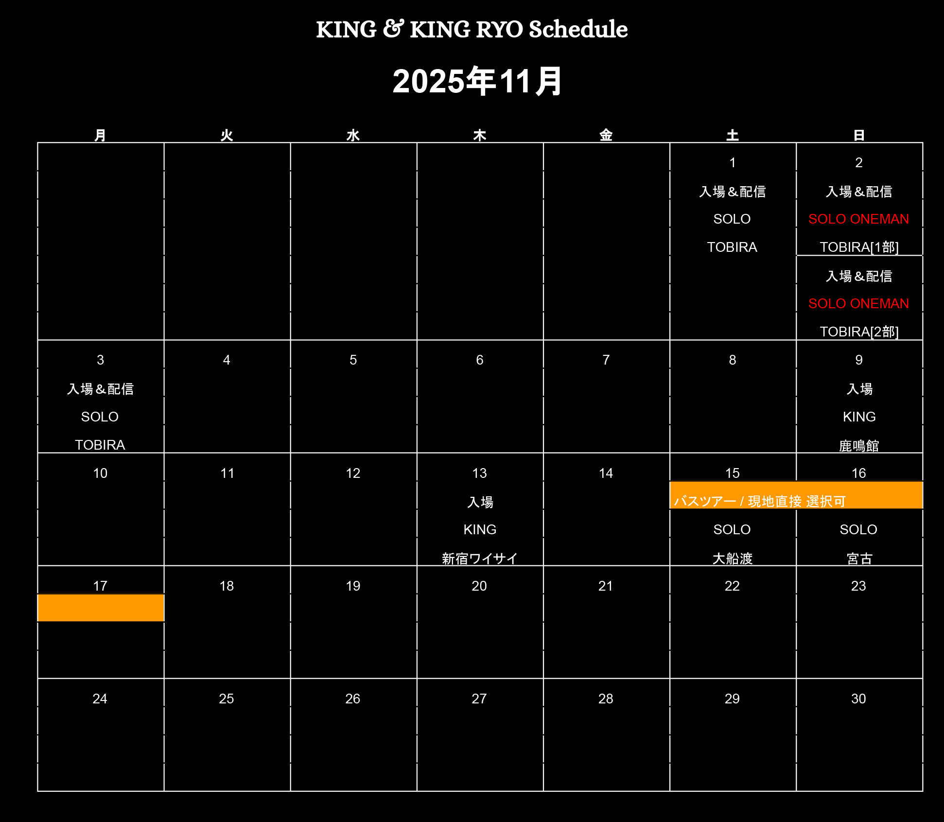 ■2025.11.03(月) 大阪アメリカ村TOBIRA 【SOLO】【入場&配信】
