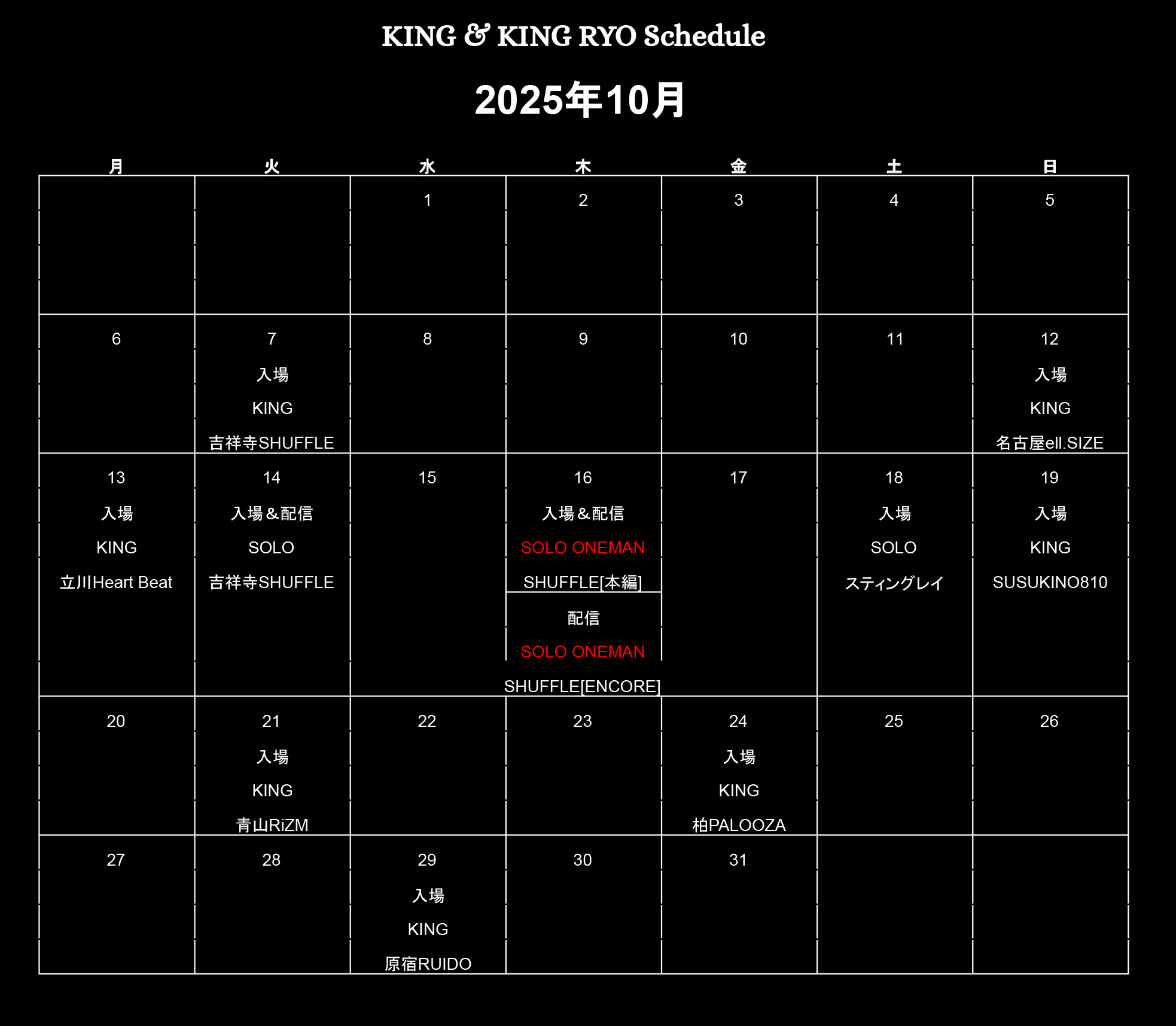 2025.10.7(火) 吉祥寺SHUFFLE【KING】【入場】